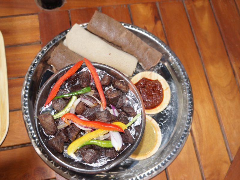 Tender beef sautéed with onions, garlic, and Ethiopian spices, served hot in a traditional clay pot with fresh herbs and a spicy kick. Perfect with injera.